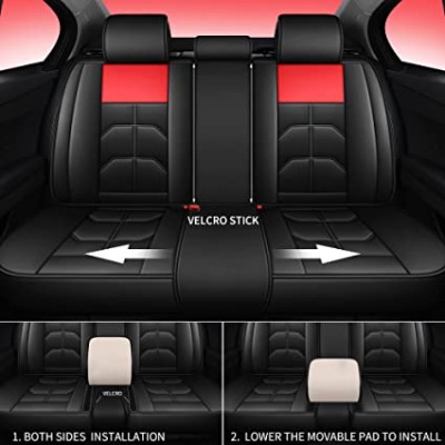 ASEO FJ Leather Car Seat Covers Full Set Faux Leatherette Automotive Vehicle Cushion Cover for Cars SUV