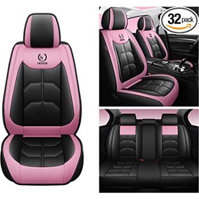 Car Seat Covers Full Set 5 Seats Faux Leather Seat Cushions Universal Fit Car Seat Protector (BK & Pink)