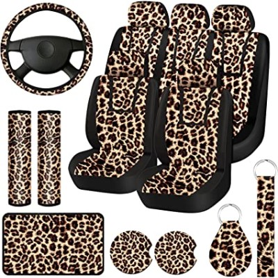 13 Pcs Leopard Print Car Seat Cover Full Set, Leopard Car Accessories for Women Men