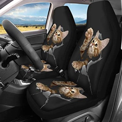 JEOCODY 3D Cat Kitten Front Car Seat Covers
