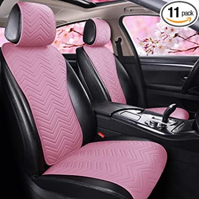 Sanwom Universal Front Leather Car Seat Covers Pink 2 Pcs Luxury Seat Covers